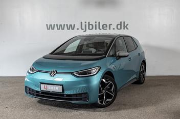 ID.3 58 1ST Pro Performance Plus 5d Tekniske specifikationer: • Ydelse: 204 hk • Batterikapacitet: 58 kWh • WLTP-rækkevidde: op til 422 km • AC-opladning: 11 kW (0–100 % ca. 7 t) • DC-hurtigopladning: op til 125 kW (10–80 % ca. 30 min) Udstyr: • Matrix LED forlygter ( IQ light ) • Adaptiv fartpilot ACC • Aftageligt træk • Apple CarPlay • Virtuel cockpit • Navigation Discover • Bakkamera • Key less go/entry (nøglefri adgang) • 2 zonet fuld aut. klima • Lane assist ( vognbaneassistent ) • Ambiente belysning • Front assist • Varme i rat • App Connect • Sædevarme • DAB radio • PDC parkeringssensor for & bag • Skiltegenkendelse • LED baglygter med dynamisk blink • Fjernlysassistent • Træthedsregistrering • Farve: Makena-Turquoise Yderligere udstyr: 19" alufælge, 4 el-ruder, el-klapbare spejle med varme, armlæn, kopholder, mørk ton. ruder, isofix, og mm. ________________________________________ Skal din nye elbil have ladeboks derhjemme? Hos LJ Biler samarbejder vi med Clever, OK og Looa