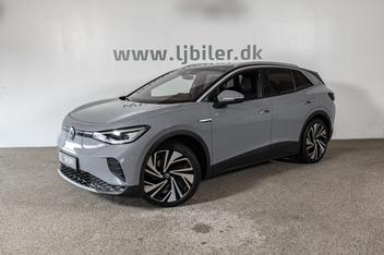 VW ID.4 77 1ST Pro Performance Max 5d Tekniske specifikationer: • Ydelse: 204 hk • Batterikapacitet: 77 kWh • WLTP-rækkevidde: op til 490 km • AC-opladning: 11 kW (0–100 % ca. 7 t) • DC-hurtigopladning: op til 125 kW (10–80 % ca. 30 min) Udstyr: • 360° kamera • Matrix LED forlygter • Elektrisk justerbare forsæder med memory-funktion • Adaptiv fartpilot ACC • Svingbart træk • Virtuel cockpit • Glastag • Navigation • 3 zonet fuld aut. klima • Lane assist ( vognbaneassistent ) • Front assist • Side assist • App Connect • Sort himmel • DAB radio • PDC parkeringssensor for & bag • Skiltegenkendelse • Fjernlysassistent • Træthedsregistrering • Apple carplay Yderligere udstyr: 21" alufælge 4 el-ruder, sædevarme, nøglefri adgang, el-klapbare spejle med varme, armlæn, kopholder, isofix, og mm. ________________________________________ Skal din nye elbil have ladeboks derhjemme? Hos LJ Biler samarbejder vi med Clever, OK og Looad. Hos LJ Biler tilbyder vi gratis batteritest på alle elbiler