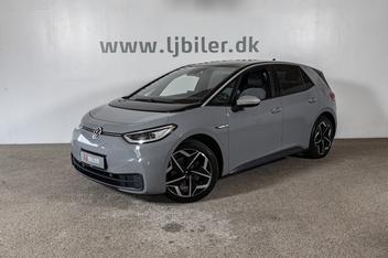 ID.3 58 1ST Pro Performance Plus 5d Tekniske specifikationer: • Ydelse: 204 hk • Batterikapacitet: 58 kWh • WLTP-rækkevidde: op til 422 km • AC-opladning: 11 kW (0–100 % ca. 7 t) • DC-hurtigopladning: op til 125 kW (10–80 % ca. 30 min) Udstyr: • Matrix LED forlygter ( IQ light ) • Adaptiv fartpilot ACC • Apple CarPlay • Virtuel cockpit • Skiltegenkendelse • Navigation Discover • Bakkamera • Key less go/entry (nøglefri adgang) • 2 zonet fuld aut. klima • Lane assist ( vognbaneassistent ) • Ambiente belysning • Front assist • Varme i rat • App Connect • Sædevarme • DAB radio • PDC parkeringssensor for & bag • LED baglygter med dynamisk blink • Fjernlysassistent • Træthedsregistrering • Farve: Mondsteingrau Yderligere udstyr: 19" alufælge, 4 el-ruder, el-klapbare spejle med varme, armlæn, kopholder, mørk ton. ruder, isofix, og mm. ________________________________________ Skal din nye elbil have ladeboks derhjemme? Hos LJ Biler samarbejder vi med Clever, OK og Looad. Hos LJ Biler tilb