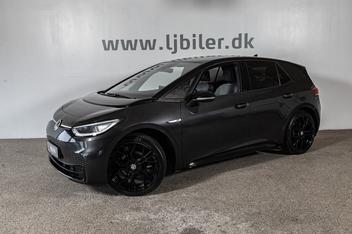 VW ID.3 58 1ST Max 5d Tekniske specifikationer: • Ydelse: 204 hk • Batterikapacitet: 58 kWh • WLTP-rækkevidde: op til 410 km • AC-opladning: 11 kW (0–100 % ca. 7 t) • DC-hurtigopladning: op til 125 kW (10–80 % ca. 30 min) Udstyr: • Matrix LED forlygter ( IQ light ) • Adaptiv fartpilot ACC • Apple CarPlay • Virtuel cockpit • Head-Up Display • Panorama glastag • El-justerbare forsæder • Massage i forsæder • Navigation • Bakkamera • Key less go/entry (nøglefri adgang) • 2 zonet fuld aut. klima • Aktiv Lane assist (vognbaneassistent) • Aktiv Side assist (blindvinkelassistent) • Ambiente belysning • Trådløs mobilopladning • Front assist • Varme i rat • App Connect • Sædevarme • DAB radio • PDC parkeringssensor for & bag • Skiltegenkendelse • Sort himmel • LED baglygter med dynamisk blink • Fjernlysassistent • Træthedsregistrering • Farve: Mangan Grey Metallic Yderligere udstyr: 20" alufælge, 4 el-ruder, el-klapbare spejle med varme, armlæn, kopholder, mørk ton. ruder, isofix, og mm. ____